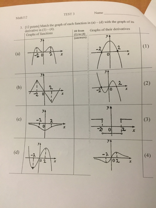 Title: Name Test 3 Math 112 3 12 Pointsl Match The Graph Chegg Functions And Their Derivatives Matching Activity Answers |